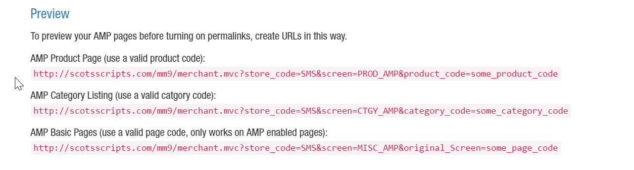 After you've set up your module and validated your AMP pages, this is used to add the AMP permalink settings to your htaccess file. There are preview links so you can perfect your AMP pages before going live.