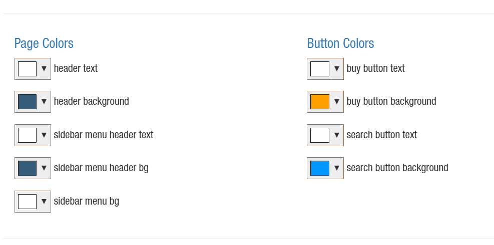 The options are similar to the product display options and include colors, bottom slider for a category (such as best sellers or whatever category you like to push), various dimension settings (can also be set in custom CSS), and an option to display the product price or not.