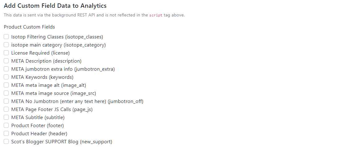 Some store owners use custom fields to create all sorts of tracking metrics and our Google Analytics 4 module makes including this data in your tracking a breeze. Check the boxes and you're good to go.