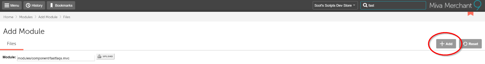 click the UPLOAD button click the ADD button (top right) to finishing adding the module to Miva Merchant