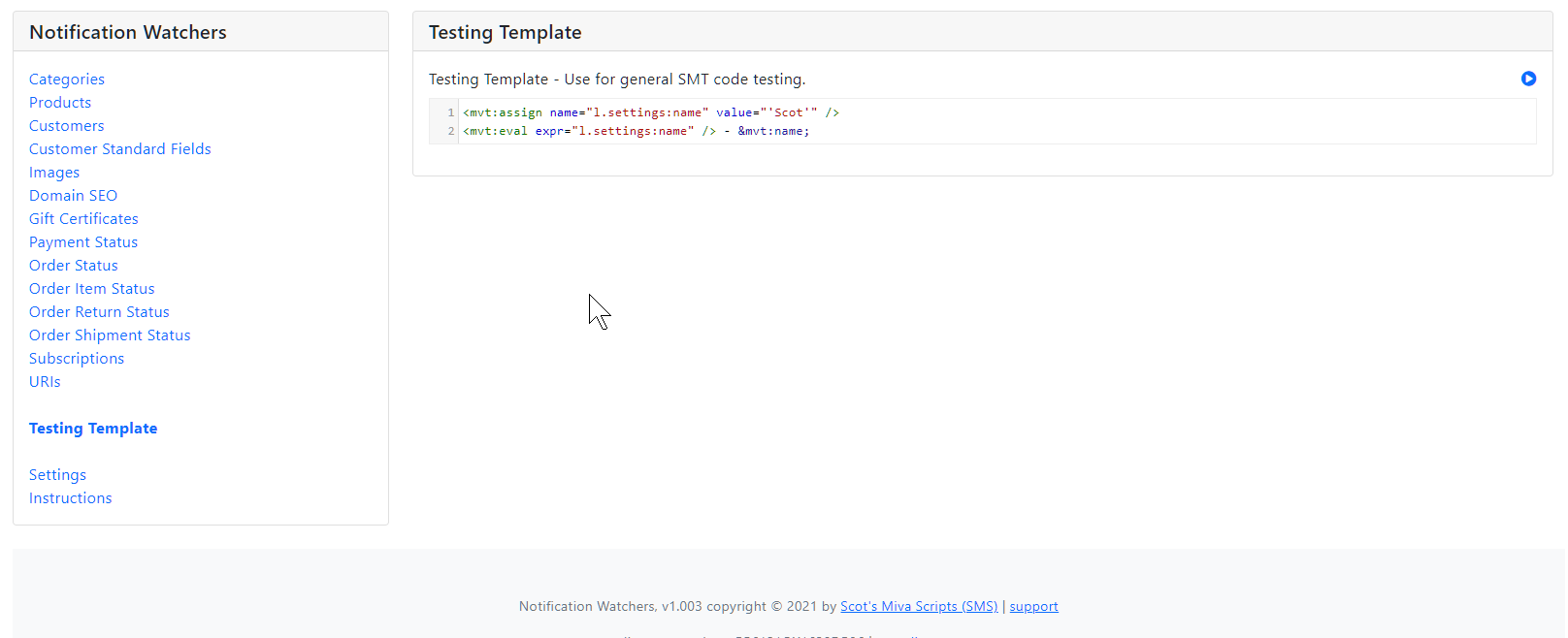 This is an advanced module for Miva Merchant for devs and store owners who are familiar with advanced features of SMT coding.
